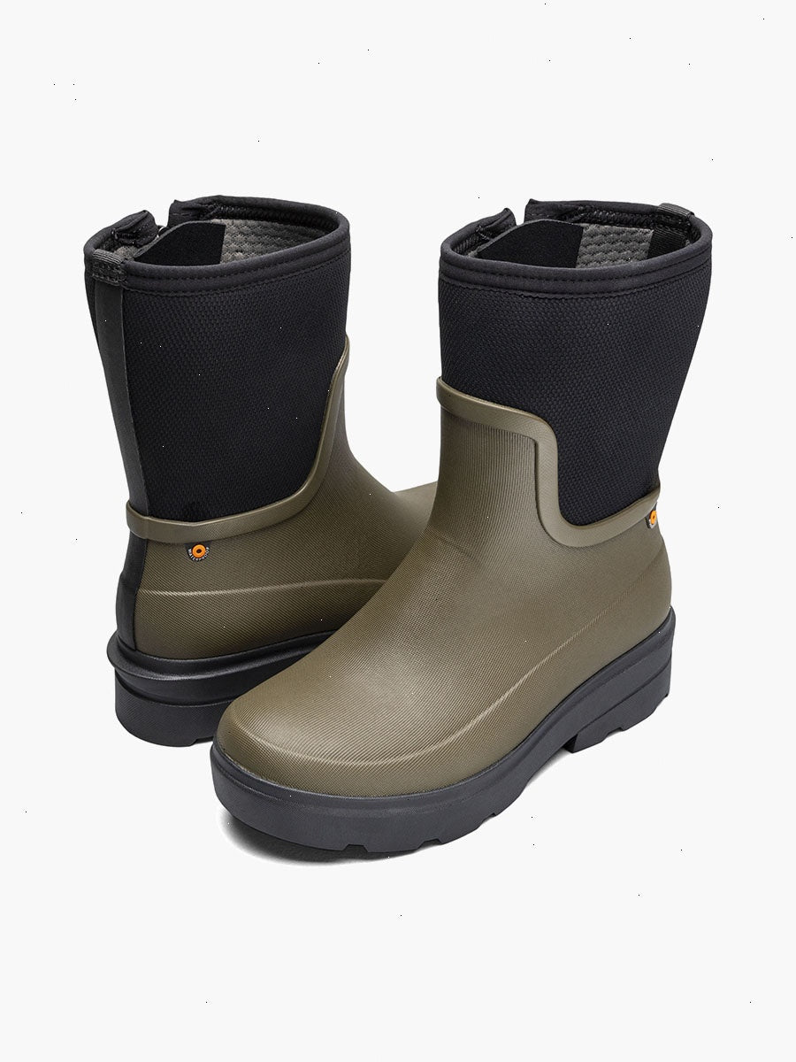 Bogs are built on a European last which is offered in full sizes.  The European last is contoured to the foot for ultra-comfort. Beginning with a roomy toe box,  the last is wider through the forefoot, supportive in the arch, and narrows in the heel.  This combination accommodates a greater range of widths and lengths, superseding the need for half sizes and widths.